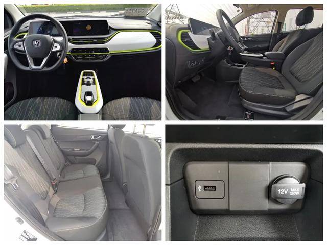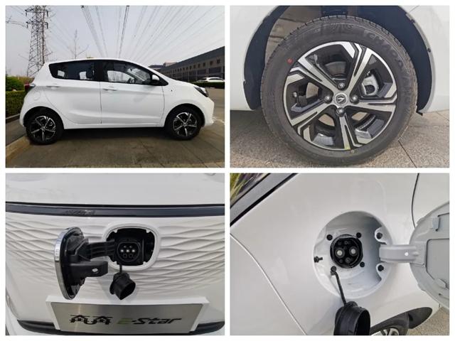 全系标配LED前大灯,并且大灯高度可调,还有伴我回家和寻车灯光功能。这个也很实用,毕竟才7.28万元。有的十几万的车都没有这个配置。高配版还有LED日间行车灯。 快充+慢充全齐。慢充在前脸,3.3千瓦的功率。快充在右后方。这个很实用。占号神器不是只有慢充。 15英寸铝合金双色轮毂,看上去很炫,而且是铝合金的。 全系标配四门电动车窗,方向盘手动调节高低,4/6分拆折叠后座椅。这个分拆折叠座椅我比较赞,有的车十几万元,都舍不得配个分拆折叠座椅。