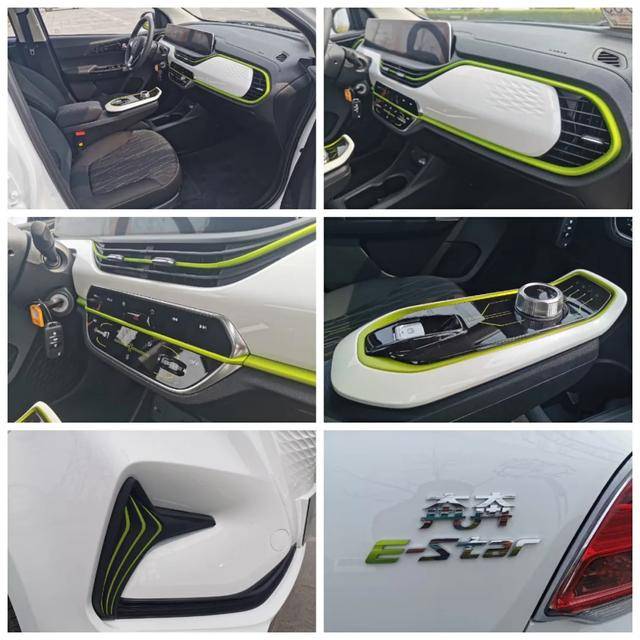 最令人震撼的是右半边屏的语音车联网。在10万元以下价位上,搭载语音车联网功能的电动汽车,奔奔E-Star是全球范围内第二款,去年上市的比亚迪 这个配置揭示了一个潮流:语音车联网功能很快就会在10万元以下的车上普及。 2、设计 提起占号神器,印象中做工、品质、设计都很简陋,仅仅能代步而已。但奔奔E-Star升级了很多,似乎标志着占号神器已经进入了2.0时代。 奔奔E-Star的外观和内饰设计进步非常大。体现在两点。一是色彩使用大胆活泼。初春垂柳的鹅黄色饰条,应用在外观和内饰上,非常大胆,恰到好处,让千篇一律的汽车色彩有了新的内容。