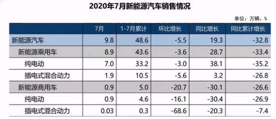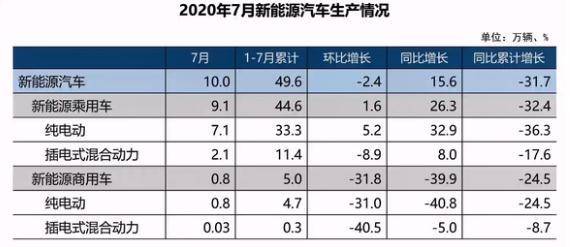 进一步来看,新能源车方面7月份完成10万辆和9.8万辆的产销量,同比增长15.6%和19.3%。新能源车当中,占主要销量的纯电动车分别完成产销7.9万辆和7.8万辆,同比分别增长17.9%和24.2%。在整个汽车行业非常不景气的大环境下,新能源车能逆势完成2020年度的首次增长实属不易。