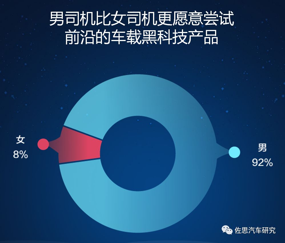 咱们也能够断定今朝使用智能网联用户的性别,今朝男司机是占比更高的,占到了92%。