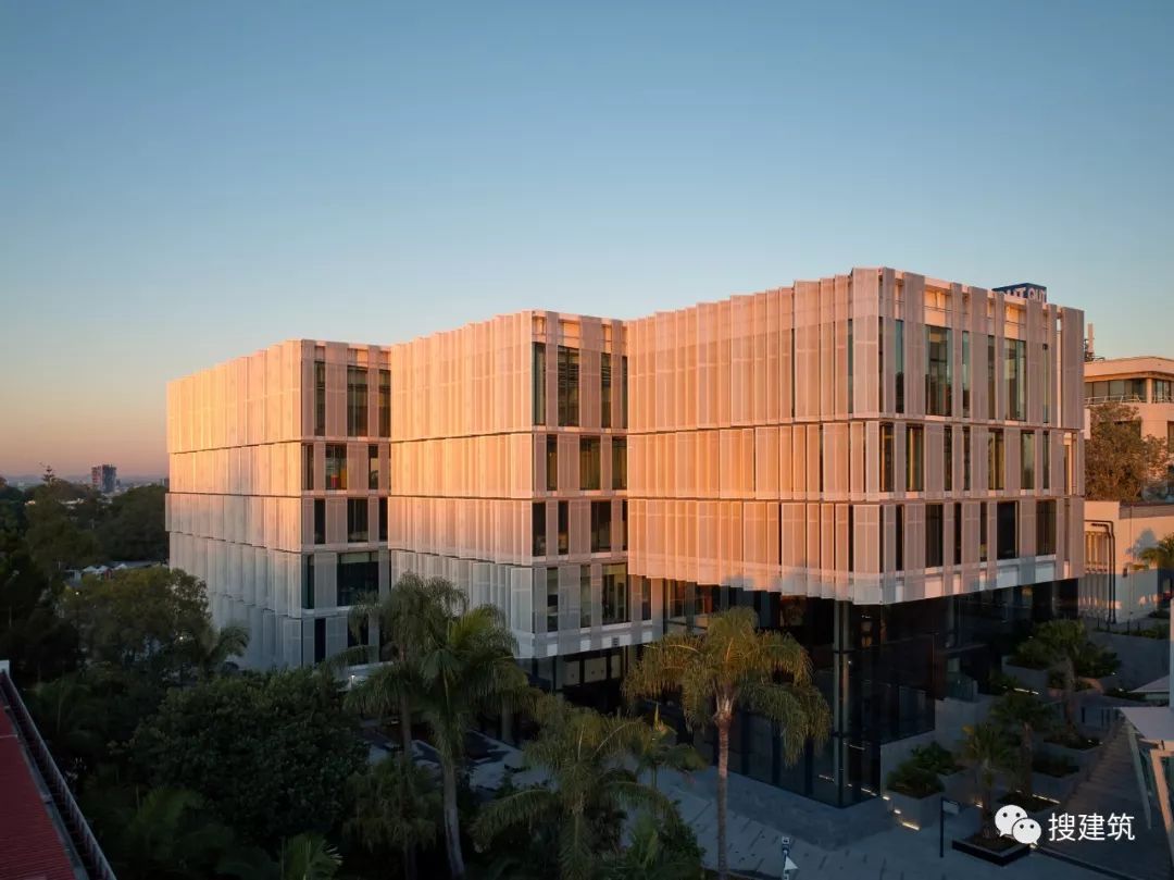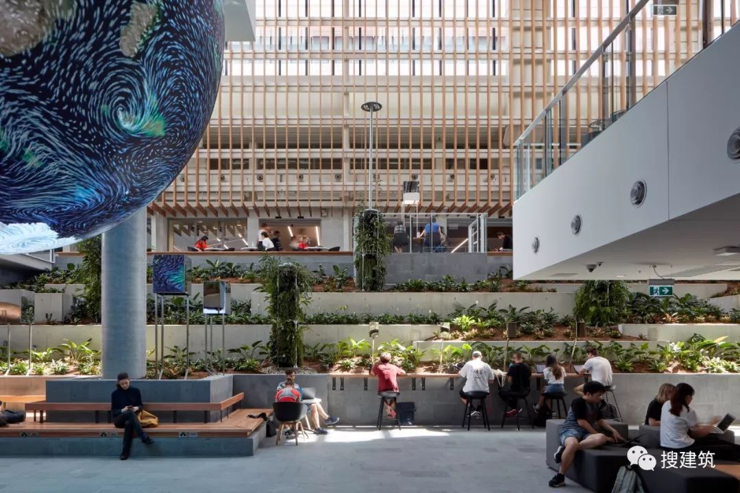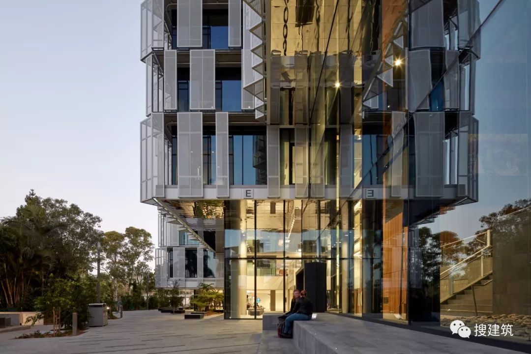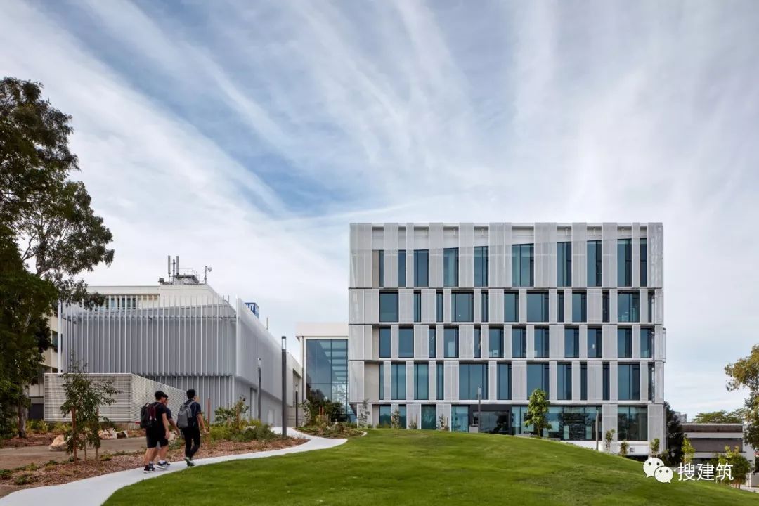 因为智能技能界说了建筑的社会以及学术空间,也塑造了建筑的根本设计。它的主动遮阳,堆叠的体积以及歪斜的外部百页窗有助于削减室内的太阳能加热,削减对能源密集型天气节制体系的总体依赖。这些遮阳措施预计将削减高达40%的太阳能取暖和量,从而支撑澳年夜利亚绿色建筑委员会绿色之星5级可延续成长评级的方针。 As smart technology defines the building’s social and academic spaces, so too has it shaped the building’s fundamental design. Its self-shading, overlapping volumes and angled exterior louvers serve to reduce solar heating within, reducing overall reliance on energy-intensive climate control systems. These sun shading measures are anticipated to reduce its solar heating intake by up to 40 percent, supporting the project’s goal of a Green Star Level 5 sustainability rating from the Green Building Council of Australia.