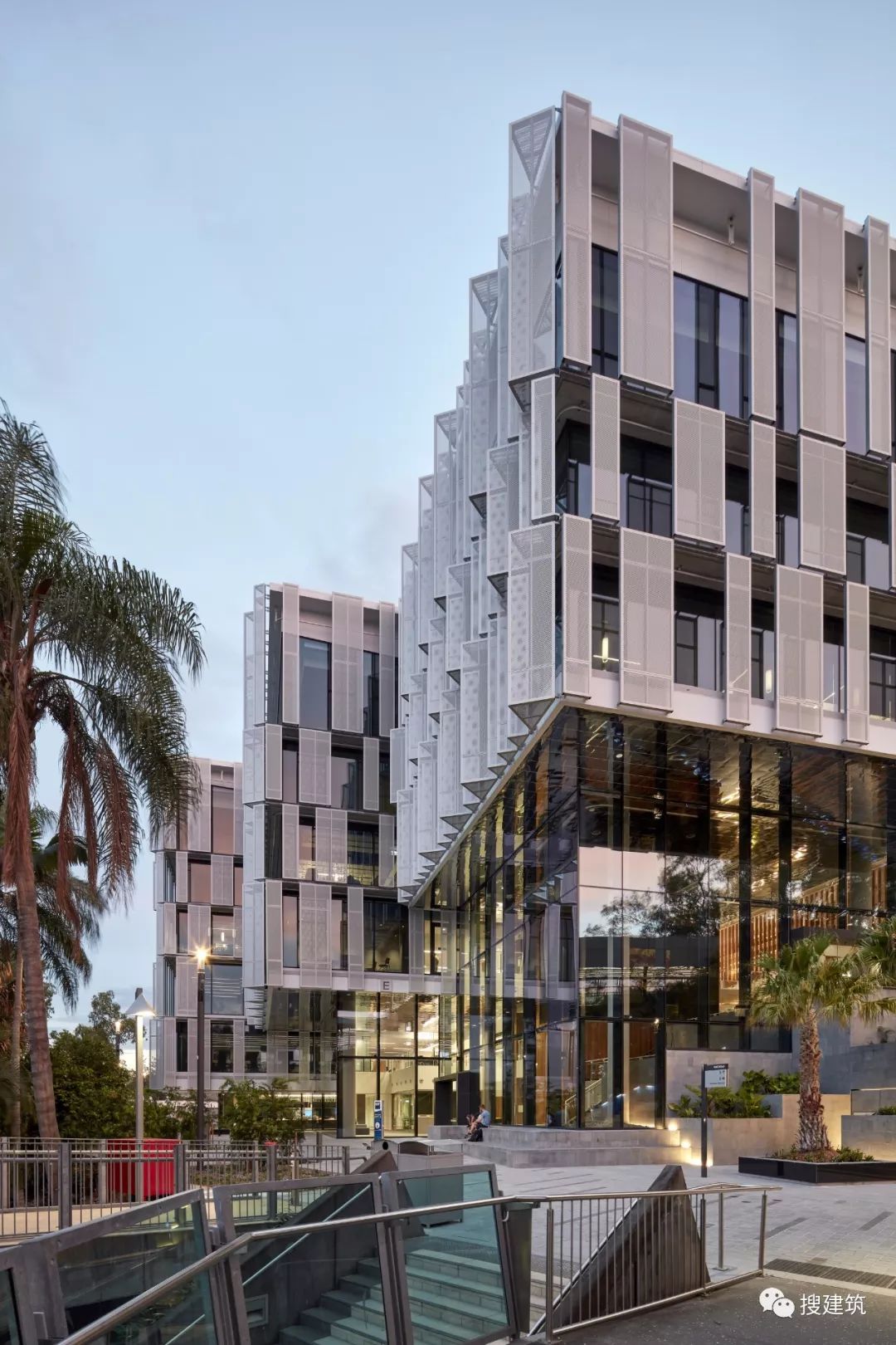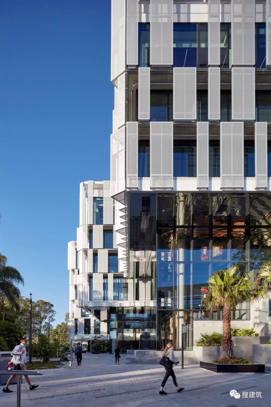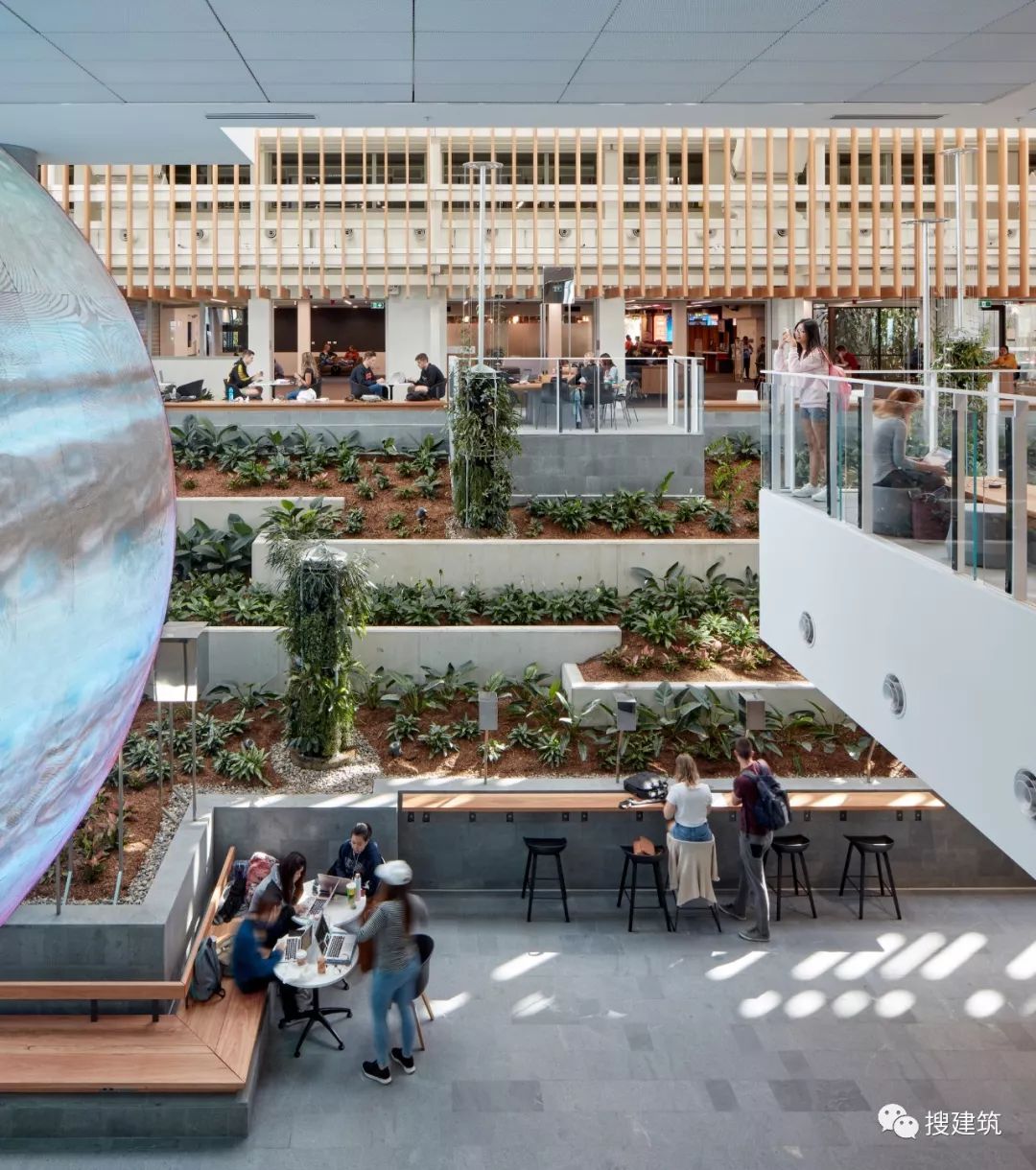 因为智能技能界说了建筑的社会以及学术空间,也塑造了建筑的根本设计。它的主动遮阳,堆叠的体积以及歪斜的外部百页窗有助于削减室内的太阳能加热,削减对能源密集型天气节制体系的总体依赖。这些遮阳措施预计将削减高达40%的太阳能取暖和量,从而支撑澳年夜利亚绿色建筑委员会绿色之星5级可延续成长评级的方针。 As smart technology defines the building’s social and academic spaces, so too has it shaped the building’s fundamental design. Its self-shading, overlapping volumes and angled exterior louvers serve to reduce solar heating within, reducing overall reliance on energy-intensive climate control systems. These sun shading measures are anticipated to reduce its solar heating intake by up to 40 percent, supporting the project’s goal of a Green Star Level 5 sustainability rating from the Green Building Council of Australia.