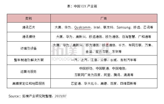 中国三年夜电信运营商踊跃开拓车联网市场,中国挪动实现基于LTE-V2X车网联以及车路协同运用,比方路口防碰撞、超车告警、告急刹车、红绿灯车速指导、路口信息推送到车等;中国联通推出多场景交融C-V2X运用解决方案,包含面向驾驶平安之车人防碰撞、车车防碰撞预警、自我调整车队等;中国电信则着重开发公交车优先行驶及泊车扶引运用。 中国车厂踊跃投入V2X实验,工业链渐趋完备 V2X工业链分为通信芯片、模块、终端及装备、整车制造及解决方案、运营服务、高精度舆图及服务等环节,为加快车联网成长,在平安与测实验证方面,有中汽中间、中国信通院、上机检、中国汽研、上海国际汽车城等科研以及检测机开展C-V2X通信、运用等测实验证事情。 着眼于中国巨大车联网商机,芯片年夜厂如Qualco妹妹推出9150 C-V2X芯片组,声援C-V2X直接通信(使用频段为ITS 5.9GHz)、全世界导航体系(Global Navigation Satellite System,GNSS)、无SIM卡运行;年夜唐电信发布PC5 Mode 4模式LTE-V2X测试芯片模块;华为亦发布声援LTE-V2X多模4.5G LTE调制解调芯片Balong 765与5G通信模块MH5000,其整合5G与C-V2X,采纳Balong5000之5G基频芯片,声援SA以及NSA双模块网。