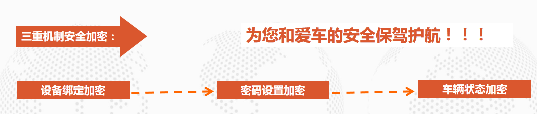 一号保镳,打造用户最佳的车联网平台节制类产物平安性机制,三重机制平安加密,为您以及爱车的平安保驾护航! 装备绑定加密:用户绑定车辆的时辰会收集用户的手机串号与装备进行绑定,当执行车辆节制饬令时,装备会与下发节制饬令的手机串号进行匹配,若是纷歧致则不会执行该饬令; 暗码设置加密:用户若是采办了车辆节制法式服务包后,APP会指导用户设置本身的专属的平安暗码,在执行车辆节制饬令前,需输入平安暗码才可进入车辆节制功能; 车辆状况加密:当车辆在行驶进程中,即GPS速率年夜于5且是定位状况则在APP不成使用车辆节制功能,然后指令下发到装备时装备同时果断OBD速率年夜于5也不会执行该指令。