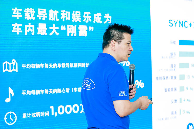 这其中,大多数SYNC+用户更愿意以“车机替代手机”,娱乐和导航依然是车主们使用频率最高的两项主要功能,使用比例分别达到了82%和92%,导航使用时长占到每辆车平均每天行驶时长的50%以上。SYNC+整合QQ音乐、喜马拉雅等平台,为用户提供海量丰富音频内容,车载音频“随心听”播放占到平均每辆车平均每天行驶时长的81%;所有用户收听时长累计超过1,000万小时。 另外,福特车主偏爱SYNC+“秒懂”的AI语音交互,平均每人每天语音交互次数达到13次。过去一年,SYNC+被唤醒共计548万次;88%的车主每天都与其进行交互,累计交互次数已经超过1.89亿次。