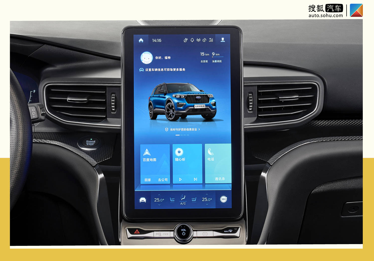 这样的关系呈现出来的,就是福特优质的车联网生态服务,在全新福特探险者车型上,这样的服务要更加明显。不同于大多数合资车企“拿来主义”导致的车机系统适配问题,福特最原生的SYNC+系统在触屏质感、反应速度与UI设计上都可圈可点。 且在基础架构方面,福特自主完成了硬件与硬件接口层的搭建,在核心层架构融合百度的服务框架,而后结合自身的基础,将百度的语音语义、地图、AR导航等诸多能力融入进了福特的SYNC+系统,这样的深度融合,至少在合资车企中是比较罕见的。