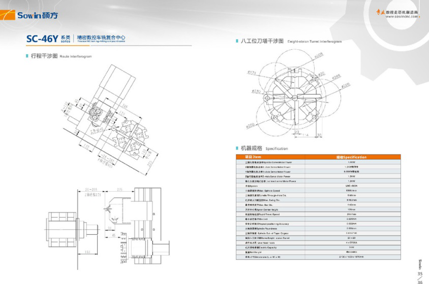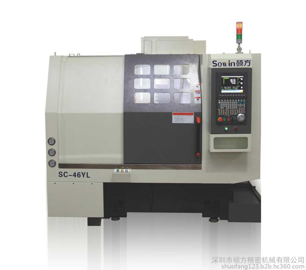硕方SC-46YL车铣复合数控车床 采纳高品质铸铁30°斜床身布局,抗弯、抗扭刚度强。C3研磨级滚珠丝杆,两头固定选用60°丝杠专用轴承,做预拉伸,定位加工精度加倍不乱。主轴采纳台湾原装入口普森高细密、高速炮筒主轴(含5个轴承)。 采纳日本安川伺服机电,全脉冲节制正确、*、快速定位等实现位置节制,可用于Cs轮廓以及刚性功牙等功能。台湾兆奕伺服刀塔,换刀速率更快,提高事情效率。Y轴4轴动力头(端面两位,侧面两位)。连系刀塔,一次装夹完成车、铣、钻、攻等繁杂工件加工。削减二次加工带来的偏差以及消耗。