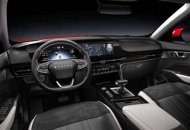 内饰方面,环抱式的中控台营造出了强烈的豪华氛围,多块液晶屏幕相结合,在视觉上起到了增强科技感的作用,而副驾驶前方的烤漆装饰板则在无形中增加了几分档次感。