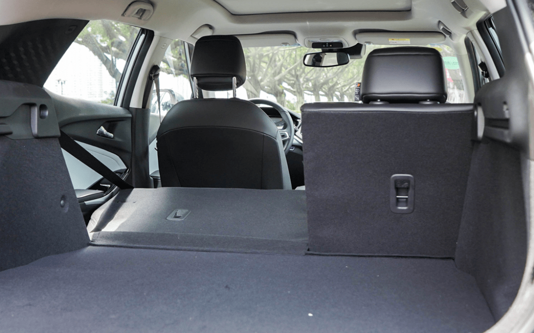 其后备厢常规容积为433升,放倒椅背后最大可以扩展到1077升,第二排座椅放倒后还是比较规整的,在行李箱挡板的下方,是摆放充电线的储物格,不但看起来很整齐,而且更有效的利用了车内的空间。