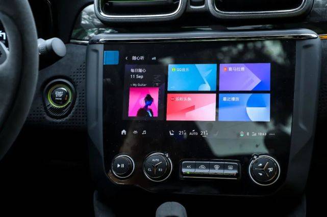 先看这套系统UI设计,整体来说这套系统UI设计从左到右大致分为两个部分:常用功能按键和可定制卡片式界面,最底层为空调调节与常规信息显示。 而且相比较其他品牌车型,领克03+冠军定制版车型在UI图标和背景图片方面都贴近当下的极简的设计风格。 主显示界面为可定制卡片式界面,占据主显示屏幕大约70%位置,该界面一次性可显示三项常用功能,并且可根据需要进行定制化更改,这里我们选择了最常用的音乐导航和天气。