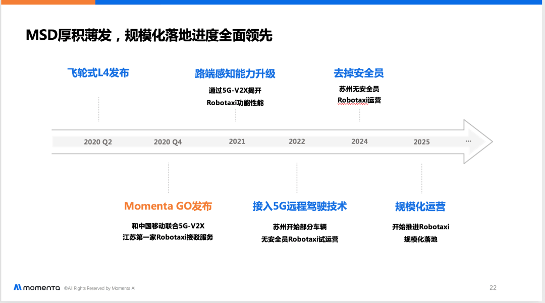 乍一看和普通出租车没什么不同 不过走近看一看 配件多了不少 据工作人员介绍 无人驾驶出租车搭载了苏州企业Momenta自主研发的L4级别无人驾驶技术MSD(Momenta Self Driving), 硬件传感器方面则搭载了12个摄像头、5个毫米波雷达、12个超声波雷达和1个激光雷达。同时,借助5G-V2X车路协同技术,无人驾驶出租车不仅可以感知近端车周环境,还可以在实现与红绿灯通讯、在路口实现突破人类视觉局限性的“上帝视角”全息感知,超视距地感知数个路口外的交通状况。 当然坐上车之前 小鱼还是有点忐忑的 不过上车之后 整体感觉十分平稳 和乘坐普通出租车没什么不同 注意,有小鱼的背影 无人驾驶出租 配备了一名安全员 师傅态度很好 很有安全感 加塞、行人、遇到大货车等 都轻松处理 晚高峰实测片段 地下车库自动泊车片段 就在今天(10月22日), Robotaxi 产品无人驾驶出租车Momenta Go在苏州正式发布,也是 江苏省第一家 Robotaxi 对外亮相。同时,无人驾驶出租车也在中国移动5G自动驾驶峰会中提供试乘服务。 峰会上,Momenta还宣布与苏州国资组建合资公司——初速度出行。这也是继Momenta于6月获得江苏首张Robotaxi示范应用牌照后,在规模化落地方面的又一个战略性节点,旨在探索创新模式和技术,为市民提供更安全、舒适、智能的无人驾驶出租车服务。 Momenta和中国移动将在全国范围合作布局道路感知算法,对包括城市主干道、行政区道路、商务区道路等各类道路上的交通信号灯等路端硬件进行车路协同改造。 合作将从苏州展开,在未来布局全国智慧交通网络。 据了解,目前无人驾驶出租车试乘服务启用邀约制。