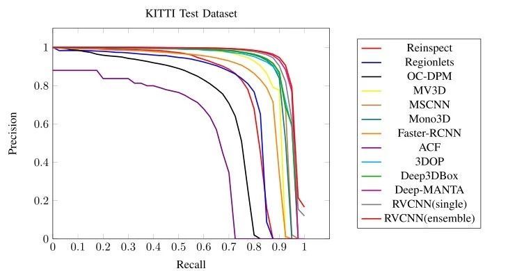 图 7.中等难度成效的 KITTI 测试集的切确召回曲线,没有方式描写的匿名提交将被疏忽 表 2
