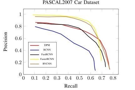 3 VOC Pascal 2007车辆数据集的试验 咱们还将咱们方式与几个竞争模子:DPM [5],RCNN [7],快速 RCNN [29] 以及更快的 RCNN [8] 在另外一个大众数据集长进行了比力:PASCAL VOC2007 汽车数据集 [1]。这些方式在一般物体检测方面得到了最早进的机能,而且这些代码是公然可用的。