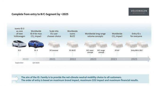 近日海外媒体曝光了一组大众品牌最新产品规划信息,截止2025年前,品牌计划将推出9款纯电动车型,并已在海外市场注册了ID.1X到ID9X车型商标。其中 ID.3(参数|图片)、ID.4(国内为ID.初见)已在海外市场上市开售。根据规划显示,大众汽车将于明年推出ID.4运动版以及ID.4X轿跑版车型。而ID.6、ID.7纯电七座SUV车型也将于明年年底前亮相其概念车型,并计划在2022年内上市开售。同时,大众汽车还将计划在2023年推出一款名为ID.2的入门级紧凑型纯电SUV,该看车型也可视为大众 T-ROC(参数|图片)纯电版车型。此外,ID.9以及ID.9X轿跑版车型或将于2025年正式发布。