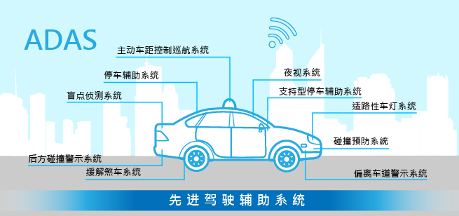 另外,像包括盲点侦测系统(Blind Spot Detection System)、支持型停车辅助系统(Backup Parking Aid System)、后方碰撞警示系统(Rear Crash Collision Warning System)、偏离车道警示系统(Lane Departure Warning System)、缓解撞击煞车系统(Collision Mitigation System)、适路性车灯系统(Adaptive Front-lighting System)、夜视系统(Night Vision System)、主动车距控制巡航系统(Adaptive Cruise Control System)、碰撞预防系统( Pre Crash System)、停车辅助系统(Parking Aid System)等都是先进驾驶辅助系统(Advanced Driver Assistance Systems;ADAS)中的一环,提供驾驶人车辆的工作情形与车外环境变化等相关资讯,并可预先警告可能发生的危险状况,让驾驶人提早采取因应措施,避免交通意外发生。