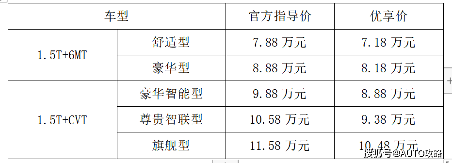 思皓A5全系搭载1.5T全铝发动机,满足国六b排放标准。发动机采用DOHC直列四缸16气门结构,应用低惯量涡轮增压和i-VVT可变气门正时系统技术,能够提供110kW的最大功率和210N·m的最大扭矩,且动力响应迅速,与之匹配的是CVT和6MT两套变速箱,动力传递平顺高效。