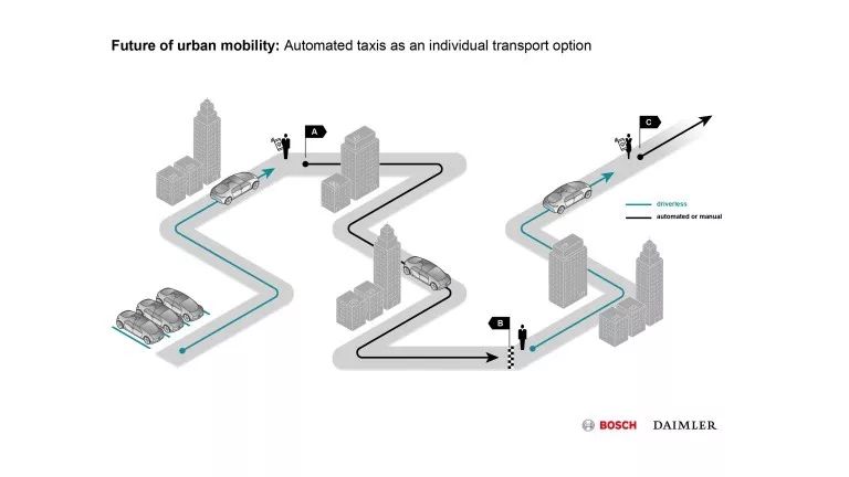 2017 年 5 月 16 日,Tier 1 供给商德尔福颁布发表参加同盟;6 月 20 日,Tier 1 供给商年夜陆参加;8 月 16 日,第二家车厂菲亚特克莱斯勒(FCA)参加。 到这里咱们再来清点下这个同盟中的资本:Intel 有 CPU + FPGA计较平台、主动驾驶汽车数据以及存储中间以及 5G 低延迟通信协定及芯片;Mobileye 有 Eye Q 系列车规级 ADAS 解决方案以及业界规模最年夜的众包高精舆图方案 REM;年夜陆以及德尔福在传感器、冗余执行机构、体系集成以及其他零部件供给方面经验丰硕;宝马以及 FCA 都是顶尖的整车集成研发以及供给链经管专家。 分工明确、各司其职、实力雄厚,这是一个可谓完善的主动驾驶同盟。在最初的互助通知布告中,宝马曾经经提到,同盟致力于开发「世界各地汽车制造商都可采纳、可定制、可扩大的主动驾驶平台架构」。 之以是会聚行业最强资本,宝马同盟意在饰演行业尺度制订者,向整个行业的汽车制造商输出主动驾驶软硬件方案。 奔跑的故事,比宝马晚了整整十个月。 2017 年 4 月,戴姆勒颁布发表以及博世就主动驾驶技能的研发结盟,致力于在下个十年初期(by the beginning of the next decade)实现 SAE Level 4 以及 Level 5 的主动驾驶汽车贸易化。该项目将整合全世界领先的汽车制造商戴姆勒的整车专业常识以及全世界最年夜的 Tier 1 博世的体系以及硬件专业常识。