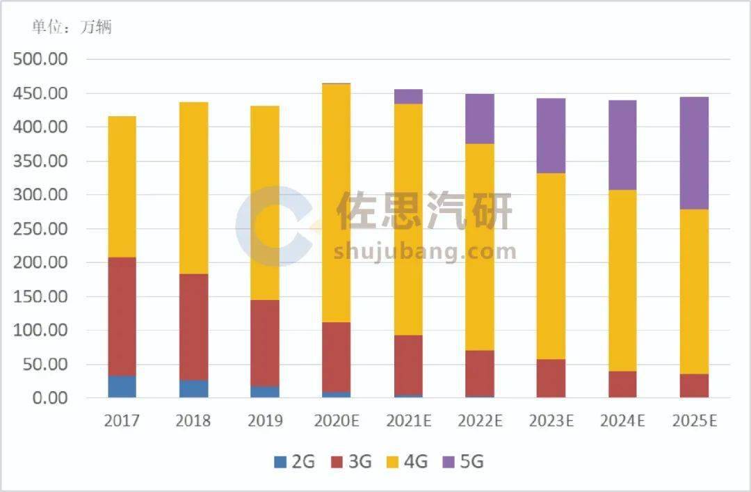 2016-2025年中国商用车搭载2G/3G/4G/5G无线通信模组装配量