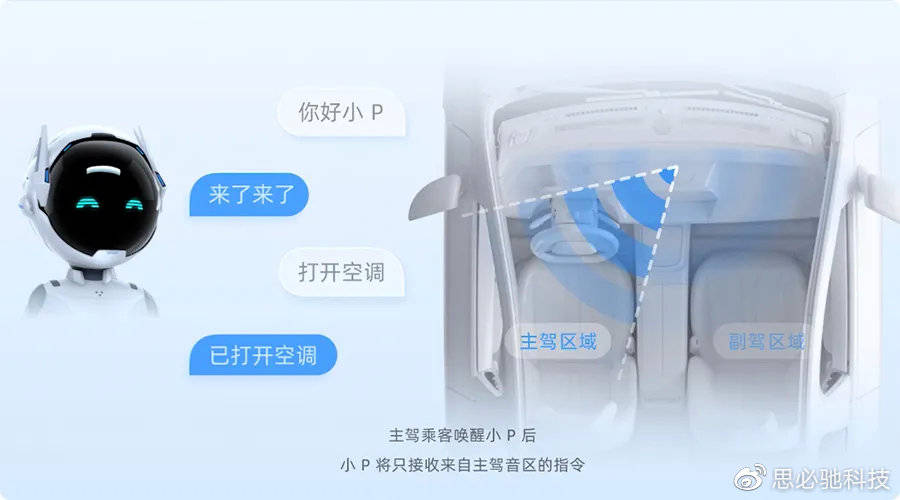 支持在对话中,随时打断小P播报。 语音对话中,尤其遇到较长的播报内容时,用户可以随时发出新指令,不必像以往必须等小P说完。 · 双音区锁定 “你好小P,我有点热”---“好的,已为你打开主驾驶座位的空调”