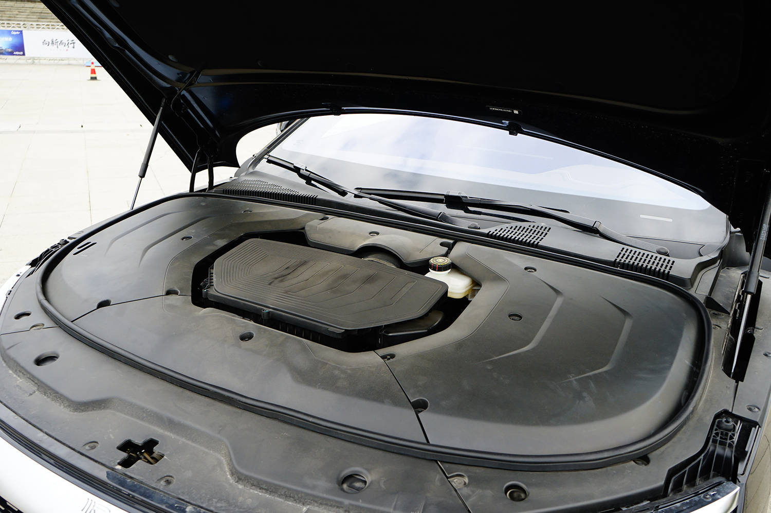 本次试驾在封闭场地,由于距离有限,我们重点体验了纯电行驶而没有体验到混动模式。纯电动模式下,车辆行驶的静谧度尤其高,而且这台后置电机即使在全功率发力时也不会出现啸叫,运行的平顺度值得肯定。由于这台车有两吨重量,单纯依靠电机,即使起步全油门,整体的加速感也不会非常唐突,更像是一台2.0T车型的加速感觉,车速会逐步释放出来,更适合日常市区用车环境。