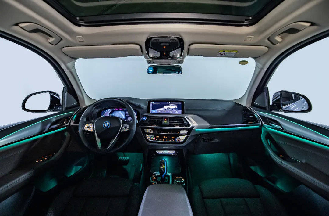 与生俱来的豪华感,带来高品质出行体验 精致而极富品味的江南生活,与创新纯电动BMW iX3带来的高品质出行相得益彰。BMW专属 “迎宾光毯”,让每一次打开车门都充满仪式感。车内可选择由6种颜色搭配出的11种环境氛围组合,赋予夜间出行形色格调。前排中控区域采用六边形设计元素,并且采用金属材质雕塑出强烈的立体感。仪表台整体采用高档的Sensatec材料,搭配10.25英寸悬浮式液晶触控屏幕以及12.3英寸可编程数字仪表盘,科技感十足。