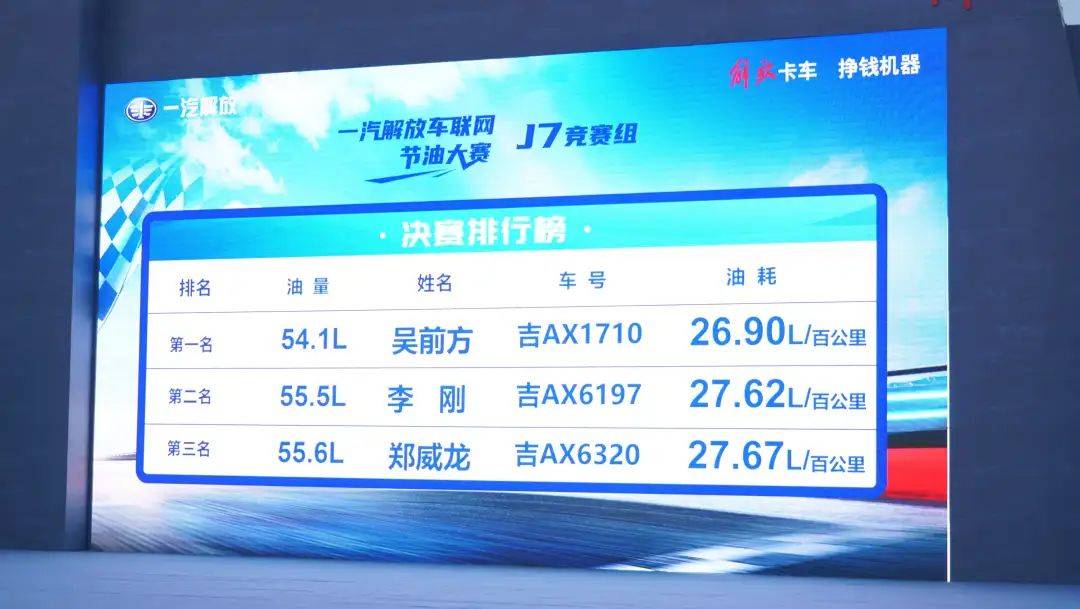 一汽解放车联网节油大赛全国总决赛现场 比赛高规格 竞技大规模 奖项大手笔 本次总决赛,规模盛大,规格空前。一汽集团总经理助理、一汽解放董事长、党委书记胡汉杰,一汽解放副总经理、青岛整车事业部总经理王瑞健,一汽解放副总经理、青岛整车事业部党委书记尚兴武,一汽解放总经理助理、销售公司总经理、党委书记王志才等解放公司高层亲临现场,为比赛打call点赞。 作为一汽解放长春、青岛两大基地车联网并网后的首届车联网节油赛,此次赛事在规模与比赛内容上进行了全面升级。从人数来看,自4月报名开启以来,累计有超10万用户线上参与,规模之大,覆盖面之广,行业鲜见。最终,来自全国各地的12位选手脱颖而出,来到总决赛的舞台,竞逐年度节油桂冠。
