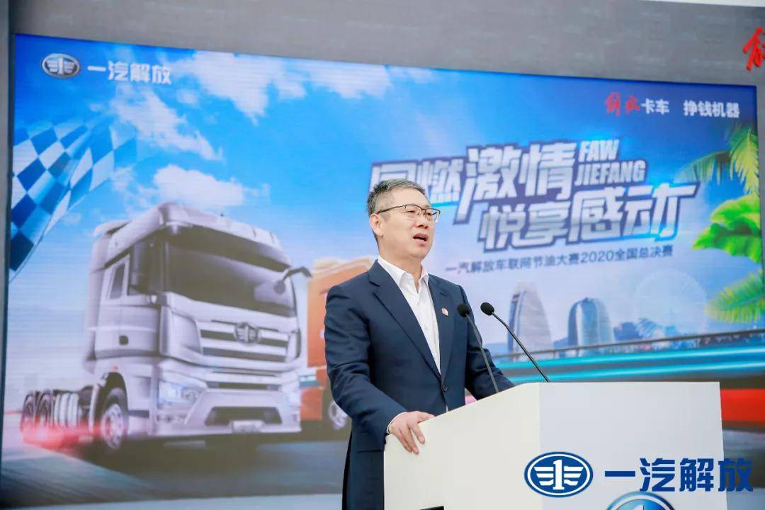 开幕式上, 一汽集团总经理助理,一汽解放董事长、党委书记胡汉杰先生登台致辞,表达了一汽解放历经60余年的发展,在制造品质卓越的卡车产品的同时,更致力于节能环保职责的践行和节油技术的创新,通过车联网节油赛这一平台,帮助卡车司机提升节油技巧,改善驾驶习惯,降低油耗成本,为国内卡车行业的健康发展,贡献持续的力量;为即将开启的大物流时代,奠定了先行的累积。