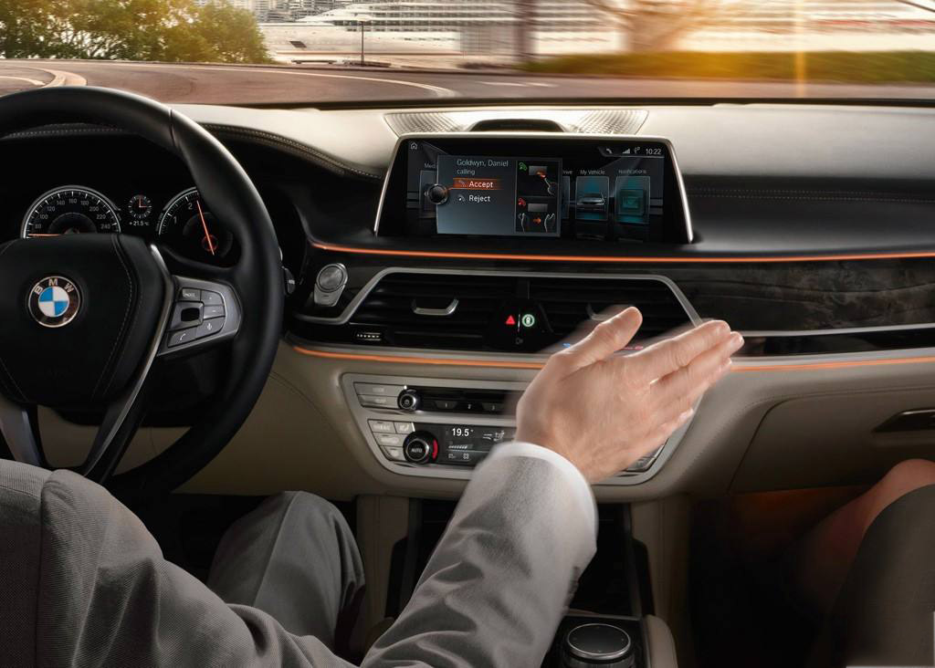 由最初的物理按键到触控再到现在的语音节制,汽车交互的情势不仅是变患上愈来愈智能还愈加具有人道的温度。而在2015年的CES上,先是年夜众为汽车交互带来一个全新的观点——手势节制,其后宝马将其发扬光年夜。手势操控的原理是中控台上方的3D摄像头发出光芒,凭据光芒发射与接受装备之间的时间差来阐发出手势的变革。终极获得的数据会通报给车载体系的节制单位,由节制单位调出与辨认出的手势相对于应的功能,然后与体系中预设的手势相匹配,下达响应的操纵指令。 而宝马的手势操控体系可经由过程空中轻点、手指画圈、摆布挥手和两个手指的平行或者斜向拖曳的一系列动作实现节制导航、信息文娱体系、接听来电等的功能。好比辨认区域滑动或者点击就能够接入或者回绝来电,食指圆周运动可以调理音量。别的体系还预留一个自界说的手势节制动作,用户可凭据小我喜好对“开关静音”、“汗青通话”、“比来使用菜单”等多项功能任选一项进行个性化设定。