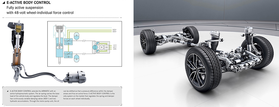 之以是会“舞蹈”全赖奔跑全新的E-Active Body Control体系,该体系会因应分歧的路况、车辆确当前状况对四根吊挂进行自力调理。好比在极度路面经由过程车身上下摆荡扶助车辆脱困,又好比在升沉路段车辆会经由过程火线摄像头拍下的路况计较出颠末这个坑的车轮、吊挂应当接纳甚么样的调校参数,确保车内乘员的舒适性。