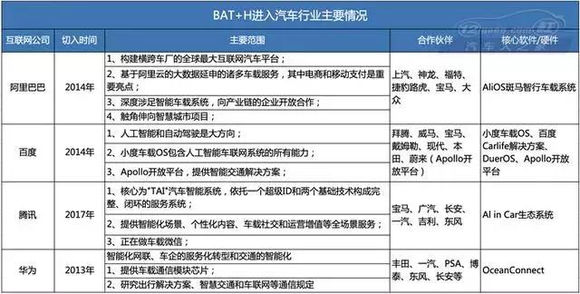 而第三种弄法,也就是海内互联网公司,切入智能汽车行业最快速、放开面最广的模式—开放平台,用钱烧出朋侪圈。 BAT+H用钱烧出朋侪圈 在已经经进入汽车以及年夜出行领域的BAT+H四强里,年夜大都把体系开源给所有车企使用,让所有人同享体系,每一一家车企为体系提供的数据,让体系的生态建患上更完美以及壮大,如许体系又能反哺给介入者,让他们在各自领域上变患上更有竞争力。