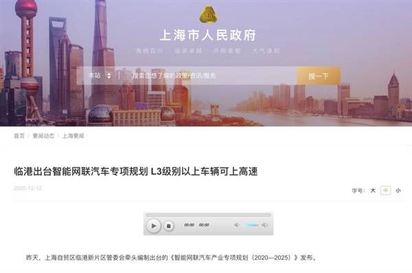 近日消息,上海市出台了《智能网联汽车产业专项规划(2020—2025)》对高度自动驾驶(L3级别以上)的推市在广做出了指导。其中,包含车辆上高速、高架道路测试及特定区域试点无安全员自动驾驶载人等。上海市将允许L3级别以上的自动驾驶车辆,在高速高架上行驶。