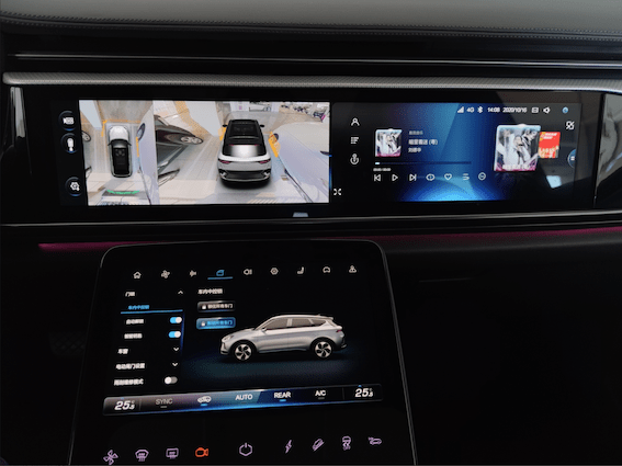 不仅如此,它在很多细节上,也绝对称得上是高端。 在没有遇到ARCFOX极狐αT之前,我经常会遭遇边开车边“智斗”车载中控屏的尴尬。ARCFOX极狐αT在全球顶级智能座舱中枢哈曼系统支持下,呈现给我的是一组全球首款20.3英寸定制化超宽中控大屏、10.1英寸的触控屏、8英寸的风挡HUD、12.3英寸全液晶仪表盘”四屏互联“。现在先进的私人飞机也不过如此了吧?