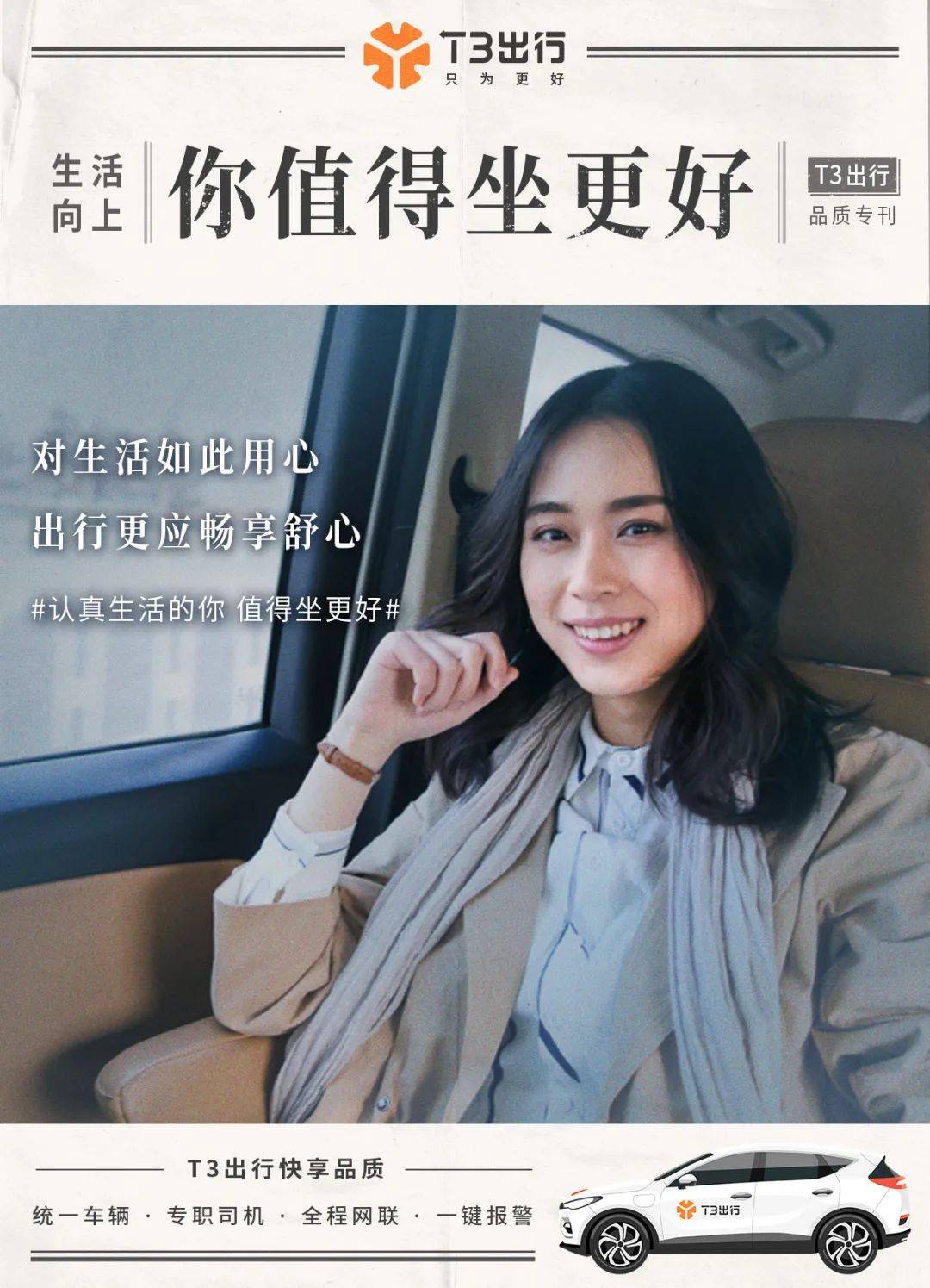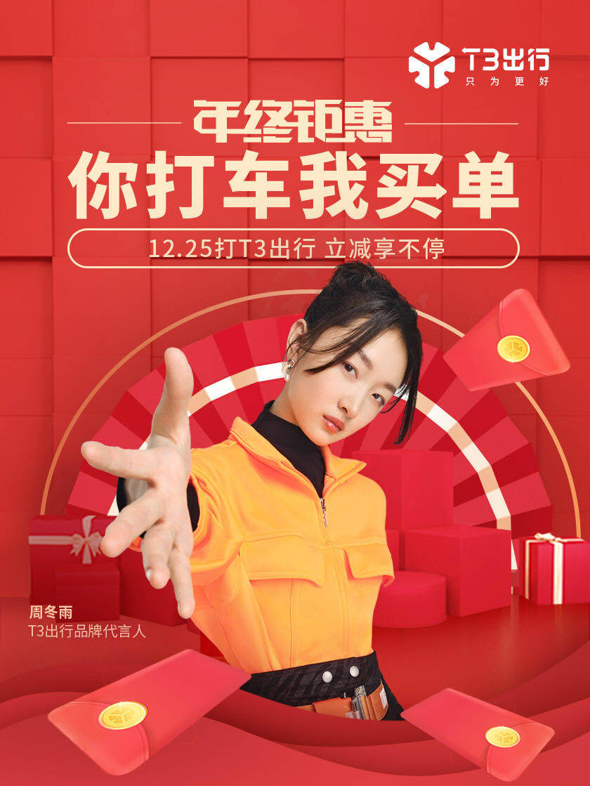 8月18日,T3出行正式官宣首位品牌代言人—周冬雨,共同倡导“出行本该安全”快和代言人一起安全出行吧!