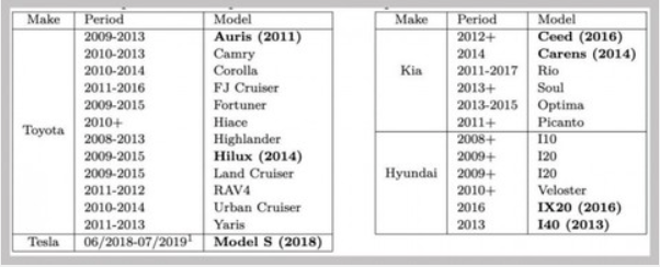 2020年3月,丰田、现代和起亚等OEM钥匙加密方式被曝出存在缺陷,存在被侵入或被盗风险。主要由于上述OEM采用的德州仪器DST80加密系统存在漏洞,黑客只要在任何搭载DST80汽车的遥控钥匙附近,使用相对便宜的Proxmark RFID阅读器/发射机设备对钥匙进行“盗刷”,其就可以获得足够的信息,从而获得其中的加密信息。
