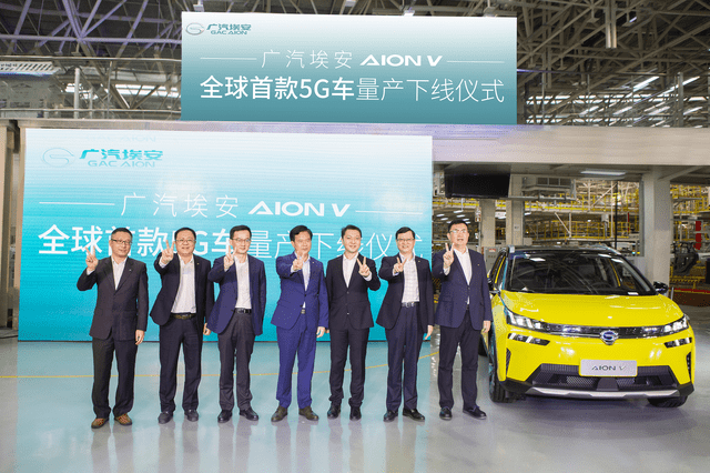 12月24日,一辆带有5G和V2X模块的AION V从广汽埃安智能生态工厂生产线缓缓驶出,标志着全球首款量产5G车正式落地,真正交付到用户手中。在当天的下线仪式活动现场,广汽埃安总经理古惠南、广汽研究院副院长李罡、华为C-V2X车路协同领域总经理缪军海、联通智网科技有限公司华南区域公司总经理刘博宇等领导嘉宾以及来自全国的主流媒体,共同见证了这一历史性的时刻。