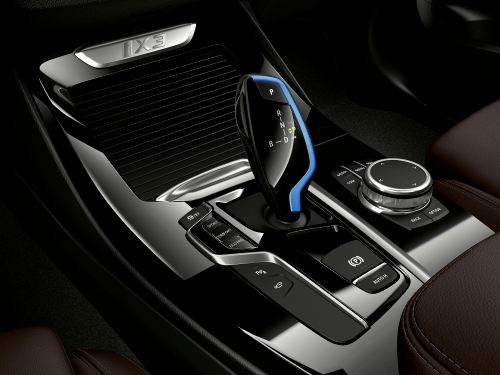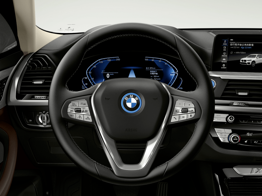 进入车内,细节总在不经意间透露出BMW iX3新能源车型的蓝色血统。方向盘中央带有蓝色圆环的宝马标识、蓝色的启停按键、挡杆上精细的蓝色镶边、中央杯架前铝合金质感的iX3印记,对分寸的拿捏恰到好处。