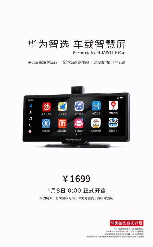 华为智选车载智慧屏拥有丰富的功能,基于分布式的技术,能够将手机应用无缝流转到车载智慧屏上,让车载智慧屏如同手机一般好用,无论车主开的是什么样的车,都能够通过装载华为智选车载智慧屏,感受车联网,大大降低车联网门槛,开启全面智慧汽车生活。目前这款产品今日正式开售,售价1699元。