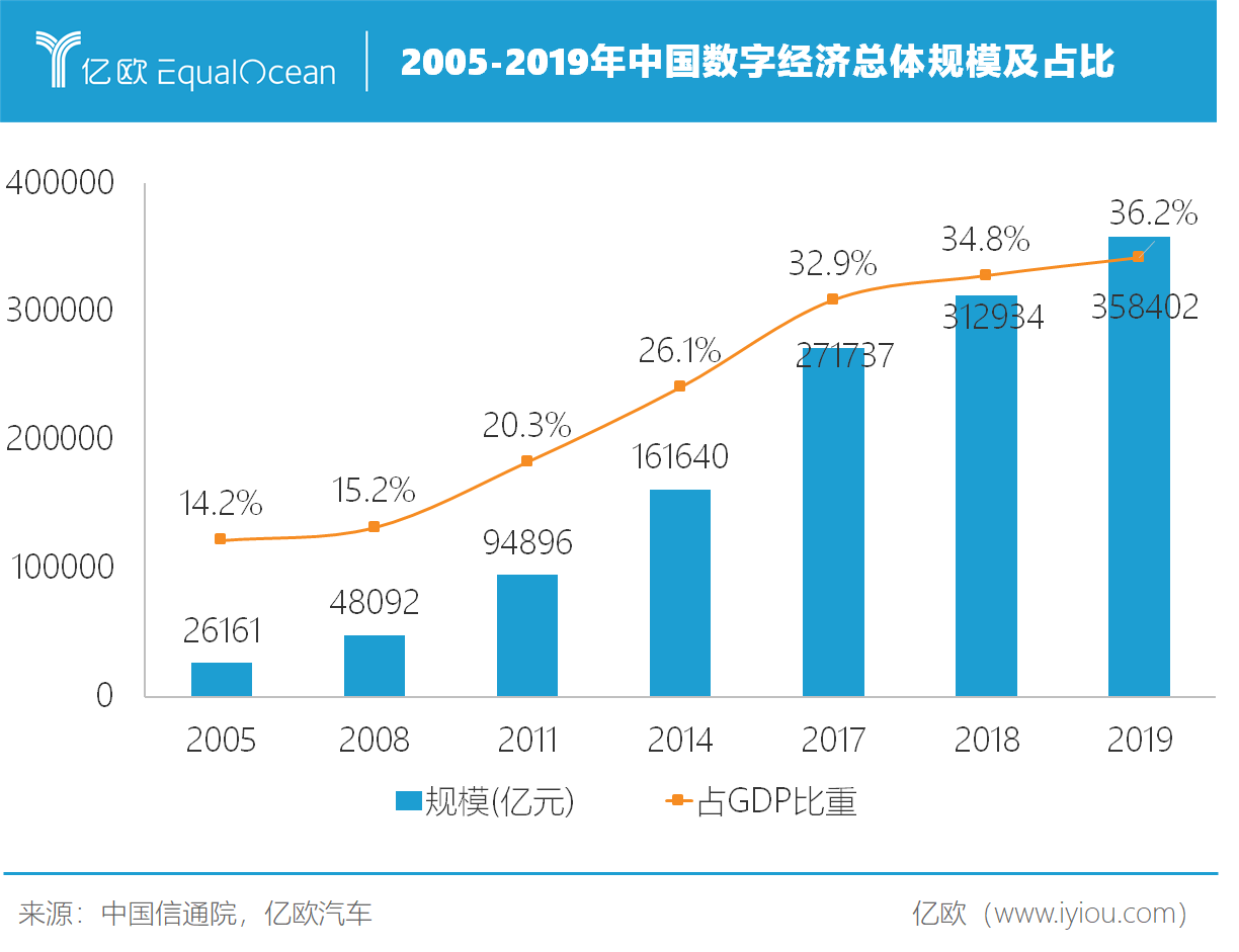 在“软件定义汽车”共识之下,车联网作为汽车产业迈向智能高端化的基础,始终贯穿于产业的发展之中,与通信网络、智慧交通、智慧能源、智慧城市与社会生活紧密结合,打破传统的产业技术体系和价值链,促进产业间深度交叉融合,形成新型产业生态体系。 数字经济将释放车联网发展红利。 根据《中国互联网发展报告2020》显示,2019年我国数字经济增加值规模已达到35.8万亿元,占GDP比重36.2%。统计局数据显示,2020年前三季度,高技术制造业增加值同比增长5.9%。软件和信息技术服务业实现收入同比增长11%。其中,大数据服务和云服务收入分别增长16%和7%。对于以车联网为核心的智能汽车产业而言,软件价值也正日益凸显。