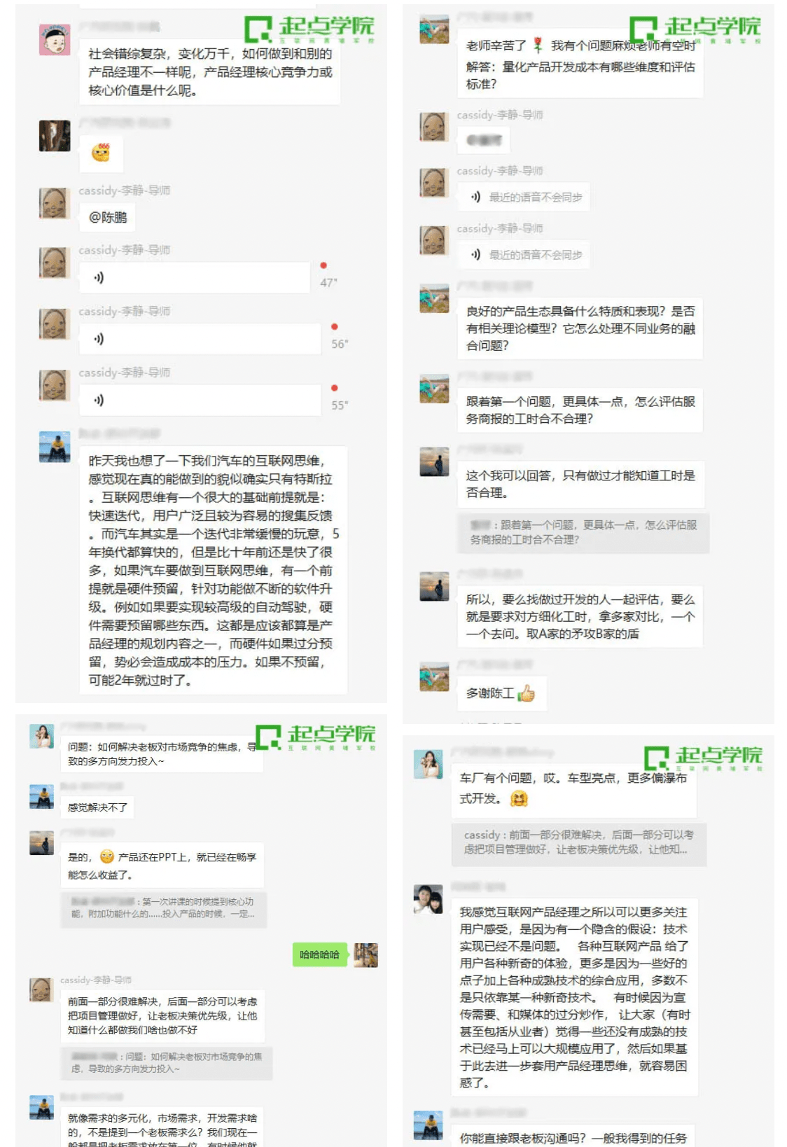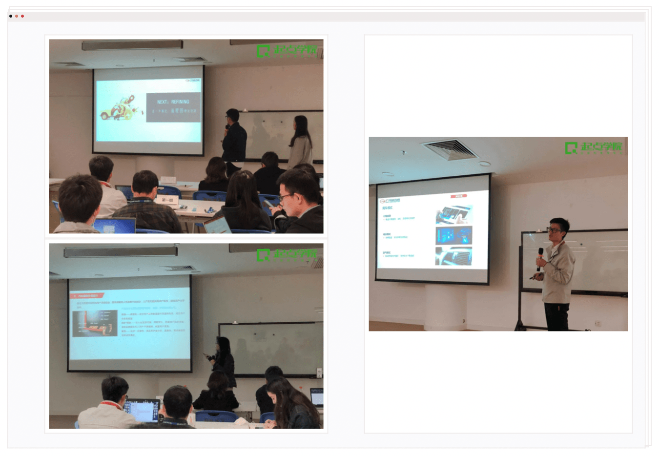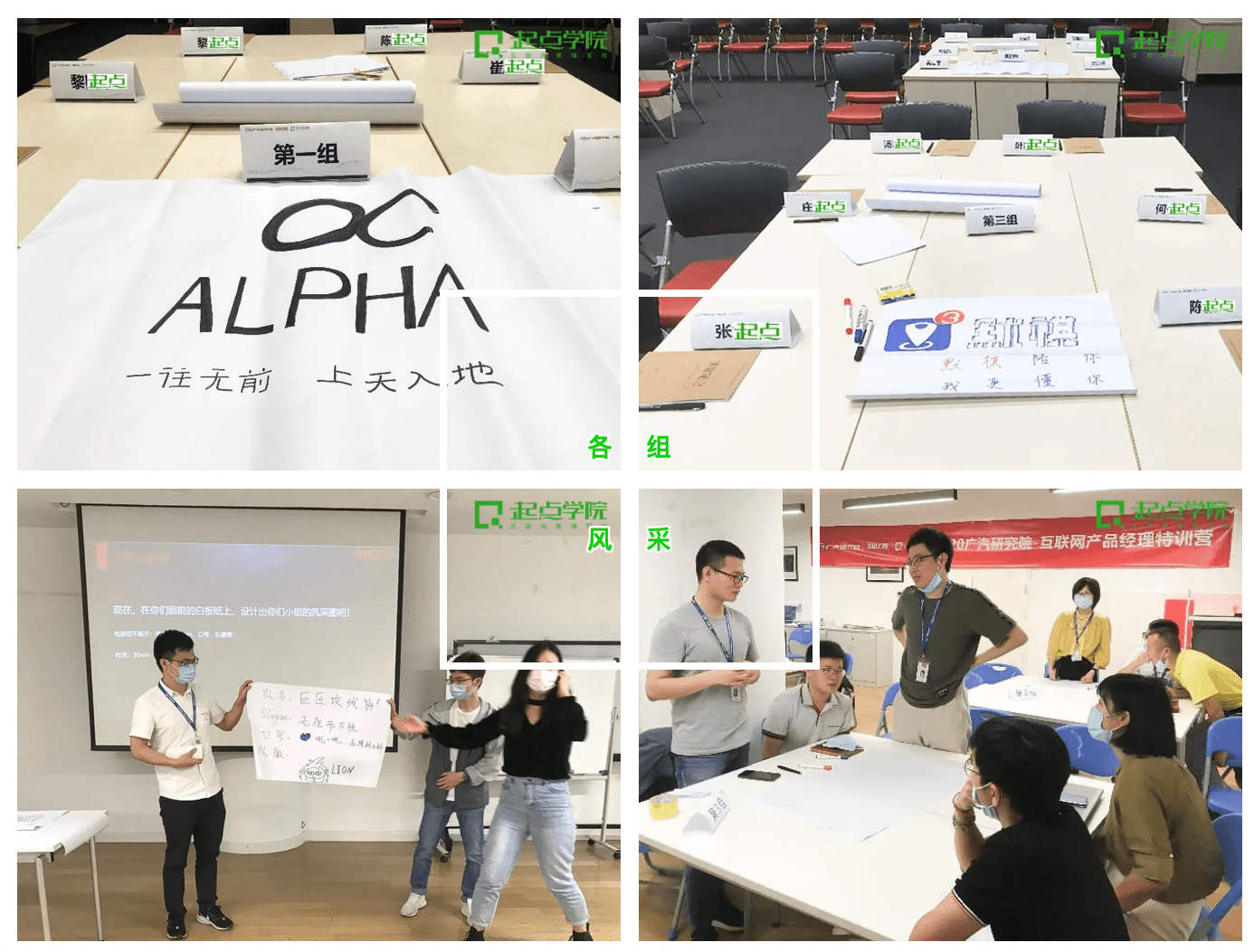 传统制造业业态正在被重新定义、重新赋能。 传统的制造装备自动化、研发设计信息化、性能开发高端化都逐渐趋于成熟并且即将成为过去时;未来汽车企业,包括整车厂和零部件供应商等整个产业链都需要重新思考全生命周期网联化、数智化,这变化不仅体现在产品上,更体现在研发、制造过程当中。 在此局势下,车联网作为汽车行业互联网化的最新发展方向逐渐出现在人们的视野——通过现代信息技术,实现车与其他的互联,可以实现车辆监控、智能路径规划、安全控制等,甚至实现自动驾驶,完善城市交通体系,造就智慧城市。 为适应大形势的发展,加快5G布局,充分发挥车企优势,华南大型车企积极围绕以车为中心的自动驾驶领域、以人为中心的智能物联领域以及以数据为中心的大数据云平台三大技术方向,探索具有广汽特色的智能网联场景,逐步升级智驾互联生态系统。 在互联网化的发展中,此车企不可避免遇到与联网时代下快速迭代的冲突,为精进其产品体系,更好地协助业务,他们联合起点学院企业大学合力打造互联网产品经理特训营。通过体系课程培养适应企业发展的互联网人才,加强人才的互联网思维,满足集团数智化、网联化的发展需求。 一、以终为始开展法则 本次特训营前后经历了较长时间的筹备,起点学院与此车企相关部门进行了深入讨论,抓住现阶段需攻破的问题重点,列出三个重点课题;每个小组领取一个课题,课题将在起点学院的陪伴下,与特训营成员一起走向最终的路演。 二、开营起点 开营典礼邀请到各参训部门领导、人才培养科领导等,就训练营培训期待跟学员进行了介绍与动员。 除了训练营规则、课程内容、时间安排、考勤规则等介绍外,班班还带领各小组认识破冰、展示小组风貌;每个小组都设计了自己的“Flag”,作为小组凝聚力的旗帜,将伴其走过一整个训练营的旅途。 1. 部分小组旗帜&风采一览