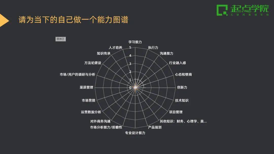 三、特训进行时 很快,在11月21日特训营的第一期线下面授课如期开展,课程邀请到触电传媒产品总监李老师(前酷狗创新组组长、前腾讯高级产品经理)进行授课。 李老师在课程中首先对产品经理进行解构,使学员明晰产品经理在不同阶段所需要的能力点,带领学员检视自己的能力雷达图。