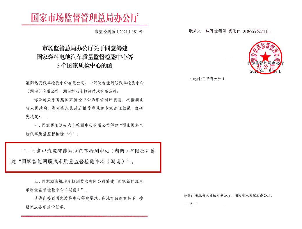 (点击图片查看) 国检中心获批 长沙补齐智能网联汽车产业链条 智能网联汽车产业是国家科技中长期发展规划和十四五规划的重要内容,是国务院《中国制造2025》所确定的战略性新兴产业领域。开展智能网联汽车领域国家产品质检中心的规划建设,对促进中国尤其是湖南省及周边地区的智能网联汽车产业质量水平的维持和提升,具有重要的意义。 国检中心由湖南湘江智能科技创新中心有限公司(简称“湘江智能”)申请筹建。筹建伊始,国家市场监督管理总局认可检测司对湘江智能进行了长达半年的考察,并在2020年12月21日组织专家组在长沙测试区召开了筹建论证会,对建设方案进行了可行性论证。