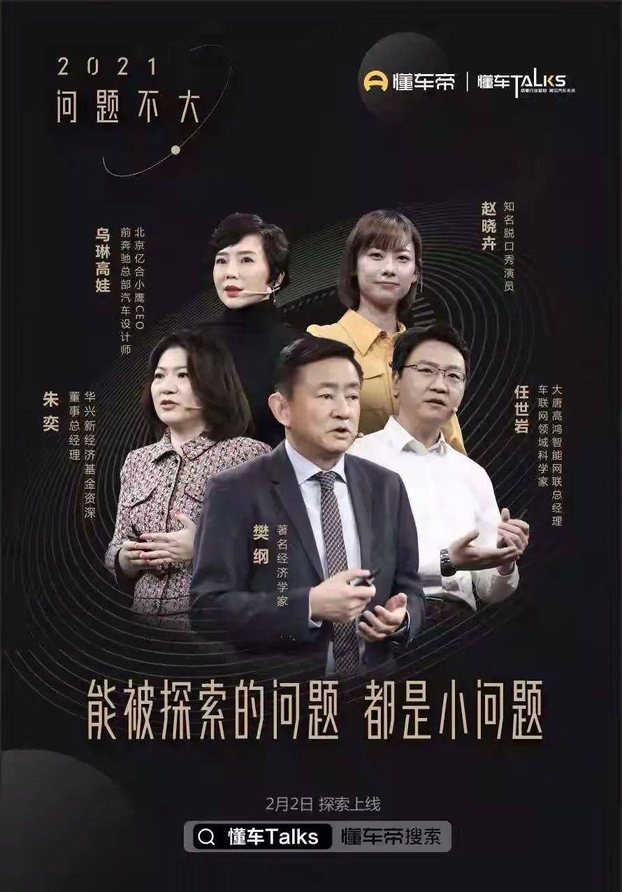 五位嘉宾从宏观经济、汽车创投、自动驾驶、汽车设计、消费需求等不同的角度,共同探索2021年变革中的汽车行业。 懂车帝难得地形成了一个“观点群”。当观点汇集,一如小小的玻璃晶体组合成功能强大的镜头,瞄准行业,创造出旷远的视野和犀利的聚焦。 2021汽车行业模糊的倒影,在这些不同镜面的投射下,形成了影像闭环,渐渐明晰了样子。 汽车观点“开放麦”,“开放”在哪里?艺术史家贡布里希有一个观点:艺术的意义不在于解决问题,而在于提出问题。那么,艺术毫无意义吗? 某种程度上,这场“懂车Talks”,就和艺术表达心有戚戚。在这场开放麦的开头,实际上就解答了这一形式的意义: “当你提出了正确的问题,往往就解决了问题的大半。” 如果要从方法论去看,“锚定方向”,就是这场开放麦最具价值的点。 另一方面,这场Talks的一大特点是表达者的胆识和观点的自由。“开放麦”在原有的语义中,就是舞台与观者围墙的打通。不挑时间,畅所欲言。 在5位演讲嘉宾的分享中,我们也确实体验到了这种阐释的开放性,主题的灵活、贴近,甚至是果敢。或许,只有真实地表达自己的看法,才有改变他人的可能——汽车也可以是不同理念的交织点,无论看好或者看坏。 “开放”,在于议时题。 2020年,汽车行业最受关注的议题之一,是造车“新势力”的快速崛起。它们身价的光速上涨,意味着什么?是好事还是坏事? 对此,华兴新经济基金资深董事总经理朱奕给出了肯定的观点。“汽车行业是不是一门好的创业生意?我的回答是肯定的,现在就是汽车创业和投资最好的时代。”“这是一个群星闪耀的时代,也是一个百年未有的变局。”