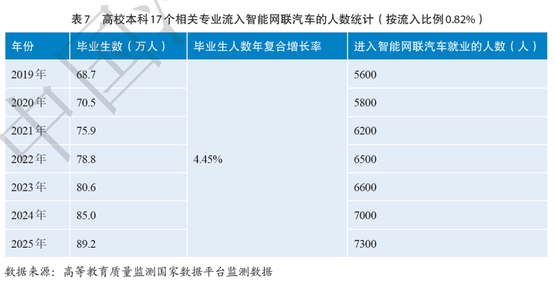 前不久,由中国汽车工程学会联合中国智能网联汽车产业创新联盟、吉林大学汽车工程学院、清华大学汽车产业技术与战略研究院、清华大学车辆与运载学院、北京上尚汽车研究院、中国汽车工程学会技术教育分会、中国汽车工程学会汽车应用与服务分会共同编写完成的《智能网联汽车产业人才需求预测报告》(以下简称《报告》)指出,尽管高校新专业和新学科设置步伐加快,毕业生规模也逐年增加,但智能网联汽车相关专业毕业生流入目标产业的比例不足一成。 中国汽车工程学会副秘书长赵莲芳在解读《报告》时表示,当前智能网联汽车存在从业人员数量供给严重不足和人才质量不能满足行业需求两大问题,需要国家、企业、行业和高校通力合作,共同为解决智能网联汽车人才面临的难题做出贡献。 毕业生流入率仅0.82%,薪酬低成主因?
