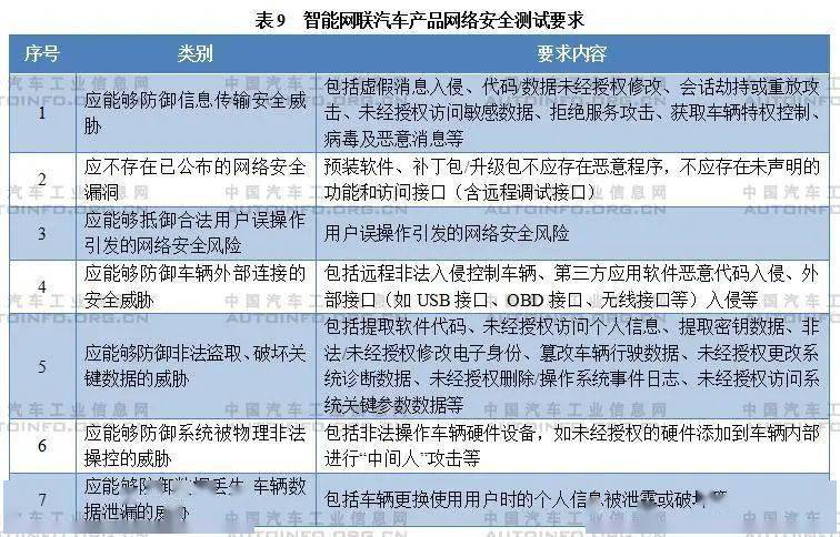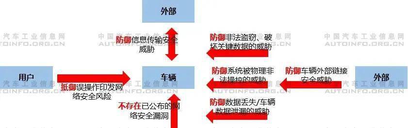 4. 网络安全测试要求 在车辆网络安全测试要求方面,应能够防御信息传输安全威胁、用户误操作和外部对车辆的故意网络入侵威胁等。