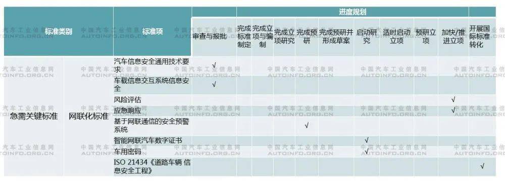 《汽车信息安全通用技术要求》预计今年就会正式发布,其它相关的信息安全标准也被列入“急需关键标准”项下,发布进程将加快。