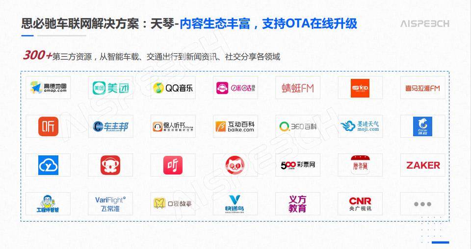刚才提到服务,服务非常重要,基本上在车上常见的,还有不太常见的也基本上全部用语音可以进行操作,地图、音乐、电台、天气、股票、火车票、百科、航班等等,这些都已经对接好了。 现在大家都对数据比较感兴趣,因为数据很重要,所以我们现在做了一个大数据平台,它可以进行语音交互数据,包括前两页说的那些数据其实就是我们大数据平台统计到的,包括大数据画像。基于这个数据可以做车主的信息推送,这是运营推送平台,可以做洗车券,保养券,节日提醒,比如说劳动节马上到了,上车的时候可以提醒今天是劳动节,直接是主动的提醒。 主机厂一般对数据比较敏感,所以可能不太放心数据跑在其他家服务器上面,甚至我们语音厂商服务器上面,基于这个痛点,我们现在推出了AI大脑私有云,相当于把AI引擎全部布到主机厂服务器上面,所有数据只有主机厂能拿的到,连我们都拿不到,这个目前来看也是比较大的趋势。这个架构图也是跟很多客户一起沟通的,我们把核心引擎全部做一个包装,基于主机厂的诉求做一个融合。 现在有很多案例,通用五菱、博泰等用的就是我们这个方案。现在合资厂商对这块就特别在意,现在我们跟东风日产也搭了一个私有云的平台,所有数据只有自己拿的到。可以看到日活,月活。车主分布在哪里,他有什么习惯,喜欢听什么歌,数据全部可以获取的到。基于这个我们再搭建一个推送平台,分区域,分设备号进行推送。 这是数据看板,可以看到语音交互习惯的占比。接下来我们看两个视频。 —VCR— 这就是刚才说的全场景,不用每次都唤醒,一直跟它对话。接下来是所见即可说,看到什么就可以说什么。 —VCR— 这套系统是不用唤醒,只有跟它说有用的话才触发。所见即可说,每个界面看到什么都可以说,而不是传统那样一定是指令式的,这就解决了用户核心的诉求。 接下来再介绍一下软硬一体化的方案。为什么车主更愿意使用手机?首先我们看一下他们用手机做什么?音频类占35%,导航地图占28%。基于这个痛点我们提出了车、家、手机三网生态数据融合方案。在硬件端做了类似于车载机器人和智能收放机的产品形态。 首先讲下硬件端,形态可以各种各样,可以是车载机器人,可以是智能收音机,可以是手机支架。核心是什么呢?核心是手机车联网方案,我们手机上有一个APP,可以把语音的东西全部放在手机上处理,支持安卓和IOS。 基于这个我们前几天刚跟雅迪签了一个战略合作,现在不仅仅是四轮车,现在二轮车也往智能化方向转型,我们跟雅迪做了两轮车方案,高端搭载我们的天琴,中低端搭载我们手机车联网方案,形态可以是仪表,可以是硬件盒子,核心是手机,连手机可以进行所有语音操控。 车家联动,现在我们集成了80多家智能家居平台,有海尔、美的、涂鸦等,可以进行车跟家的联动,只要是我们接过的设备,比如说快到家了,可以说把我家里的空调打开,可以进行提前操控。 这个产品形态是可以各种各样的,比如说 我们还与三一搅拌车做了一个合作,这边项目做成了轮胎的形状,我们还有好多客户也在做,形态是各种各样的。