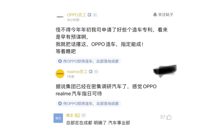 在“造车”执行层面,OPPO软件工程副总裁吴恒刚已经参与,他是面试自动驾驶、算法方面岗位的最高级别高管。而去年从小鹏汽车加入OPPO的首席科学家郭彦东也参与了自动驾驶团队筹建,同时,相关座舱岗位也已经开放。 早在2019年,在OPPO首届强调技术与创新的INNODAY大会上,陈明永曾表示,“即使造车,也会专注于OPPO能做好的领域。目前不会造车,如果汽车厂商造不好车了,OPPO有这个实力的话,未来会做尝试”。