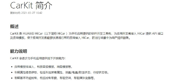 华为入局智能汽车产业的起点是车联网技术,也就是华为 HiCar。在它面世以前,在车联网的手机和车机的互联技术当中,市面上用到最多的是苹果CarPlay和百度CarLife。而两者都有自己明显的短板,苹果CarPlay功能简单,且仅支持iPhone手机设备;百度CarLife虽然具有最广泛的适配性,但从严格意义上来说,它并不是一个完整的系统,只是将手机上的应用通过数据线实现投屏到车机屏幕上,不仅应用仅支持百度系产品,延迟和卡顿现象也十分严重,饱受诟病,这些行业痛点亟需解决。