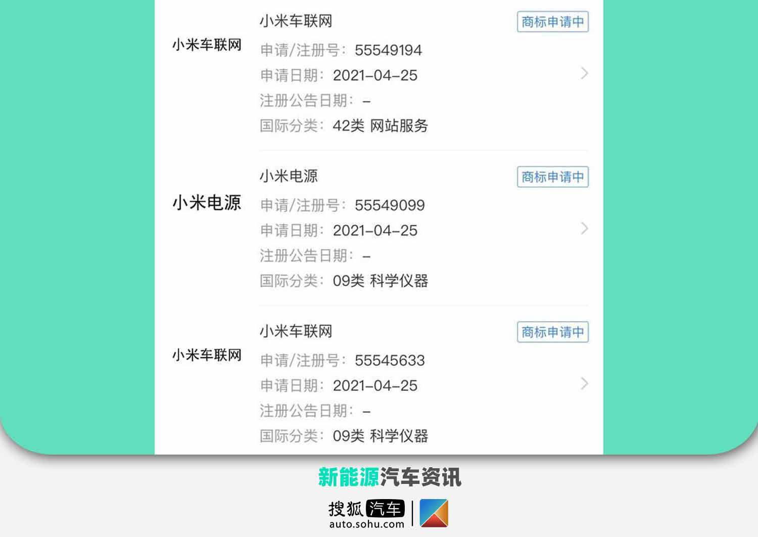 出品 | 搜狐汽车·E电园 3月30日,小米正式发布公告,确认进入电动车市场,成立智能电动汽车业务全资子公司,首期投资100亿人民币,预计未来10年投资额达100亿美元。日前,我们从相关渠道获悉,小米申请多个汽车类商标,包括“小米出行”“小米智联”等。