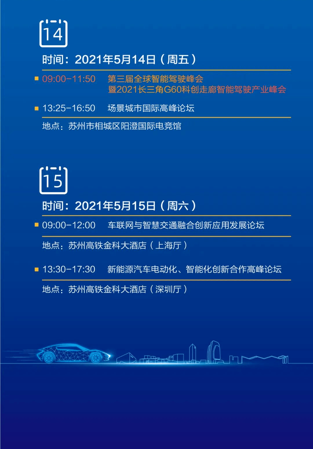 智联世界 驾驭未来 第三届全球智能驾驶峰会暨 2021长三角G60科创走廊智能驾驶产业峰会 即将重磅来袭 5月14日至15日 ?????峰会再次遇见苏州相城!
